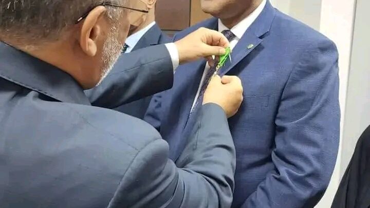 توشيح السيد باب أحمد ولد محمد ولد باب أحمد المدير العام المساعد للطيران المدني صباح اليوم وبإسم فخامة رئيس الجمهورية ومن طرف معالي وزير التجهيز والنقل محمد عالي ولد سيد محمد بوسام إمتنان وطني …
