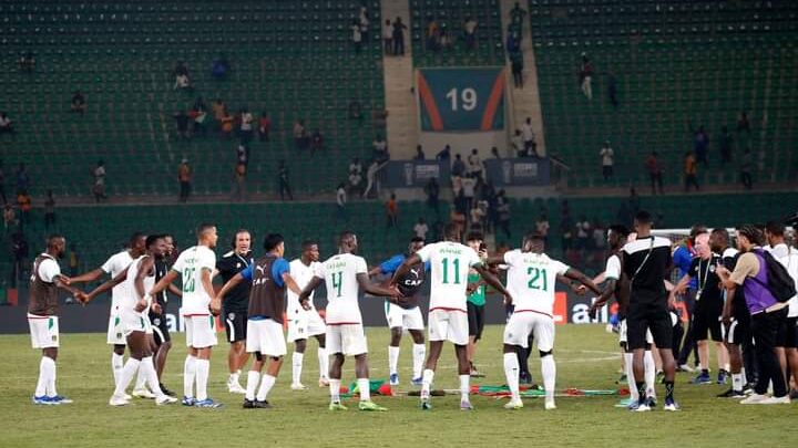 لاعبو المنتخب الوطني خلال احتفالهم بالتأهل للدور الثاني من الكان- فيسبوك