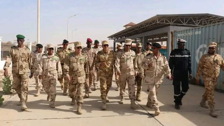 وقد رافق قائد الأركان العامة للجيوش خلال هذه الزيارة اللواء البحري أحمد بنعوف قائد أركان البحرية الوطنية والعقيد الحسن ولد مكت قائد فرقة الاستعلامات العسكرية والعقيد تيام مامادو قائد فرقة البنى التحتية والعقيد محمد الراظي آدي مدير تشريفات قائد الأركان العامة للجيوش والمقدم سيدي محمد ولد حديد مدير الاتصال والعلاقات العامة.
