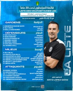 كشف مدرب المنتخب الوطني للشباب، أريتز لوبيز غاراي، عن قائمة المنتخب المستدعاة للبطولة الدولية للشباب المنظمة من 18 إلى 26 مارس بالجزائر، والتي ضمت 23 لاعبا غالبيتهم من البطولة المحلية، وتعد هذه القائمة الأولي للمدرب الإسباني لوبيز غاراي، الذي تم تعيينه قبل أسابيع خلفا للمدرب المقال الطالب لمرابط.