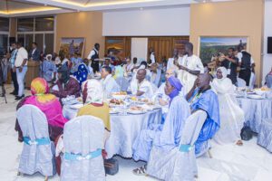 جرى حفل الإفطار بحضور السيدة الأولى الدكتورة مريم الداه، والوزير الأمين العام لرئاسة الجمهورية، والوزير المكلف بديوان رئيس الجمهورية، والمندوب العام للتضامن الوطني ومكافحة الإقصاء، والأمين العام للمندوبية.