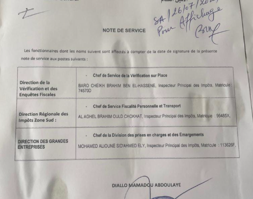 وقع الأمين العام لوزارة المالية اديالو آمادو آبدولاي مذكرة تعيين يوم أمس الجمعة 26 يوليو 2024، وذلك في الأسبوع الأخير من عمر الحكومة الحالية وبعد عقد آخر اجتماعاتها.