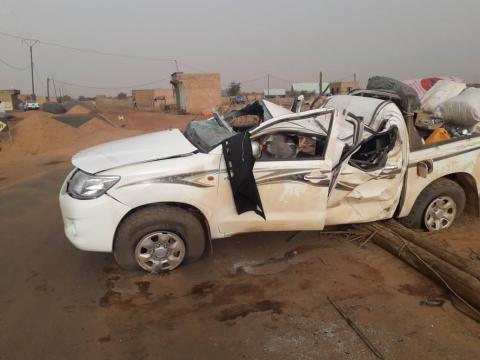 أصيب عدة أشخاص بجروح في حادث سير، مساء اليوم السبت، تعرضت له سيارة كانت ضمن الوفد المرافق لوزير الزراعة أمام ولد بيبات، أثناء زيارته لمدينة لعيون.