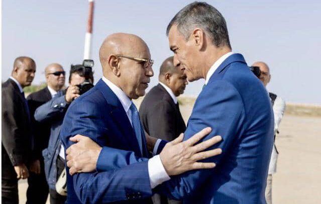 استقبل الرئيس محمد ولد الغزواني، رئيس الاتحاد الإفريقي مساء اليوم الثلاثاء في مطار نواكشوط الدولي أم التونسي، رئيس الحكومة الاسبانية بيدرو سانشيز، الذي يقوم بزيارة صداقة وعمل لموريتانيا تدوم يومين.