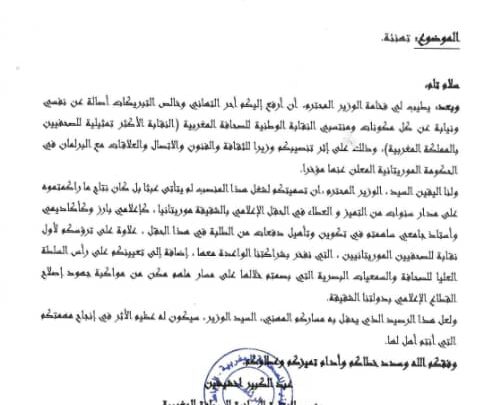وأعرب رئيس نقابة الصحافة المغربية بالقول: ” ..لنا اليقين السيد ، الوزير المحترم، أن تسميتكم لشغل هذا المنصب لم يتأت عبثا، بل كان نتاج ما راكمتموه على مدار سنوات من التميز و العطاء في الحقل الإعلامي بالشقيقة موريتانيا ، كإعلامي بارز وكأكاديمي وأستاذ جامعي ساهمتم في تكوين وتأهيل دفعات من الطلبة في هذا الحقل ، علاوة على ترؤسكم لأول نقابة للصحفيين الموريتانيين ، التي نفخر بشراكتنا الواعدة معها ، إضافة إلى تعيينكم على رأس السلطة العليا للصحافة والسمعيات البصرية التي بصمتم خلالها على مسار ملهم مكن من مواكبة جهود إصلاح القطاع الإعلامي بدولتنا الشقيقة.”