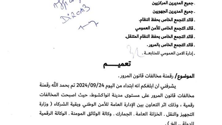 الشرطة تعلن لساكنة انواكشوط عن رقمنة مخالفات المرور