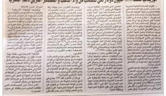 وذالك للإنسحاب من الأراضي التي كانت تسيطر عليها القوات المسلحة الموريتانية في الصحراء وتعتبرها جزأ من الأراضي الموريتانية واستندت الصحيفة إلي وثائق اكدت بانها مسربة من المخابرات الامريكية حول الملف المذكور.