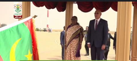 واستقبلت الرئيسة الهندية بمطار أم التونسي بنواكشوط من الرئيس الموريتاني محمد الشيخ الغزواني وعدد من أعضاء الحكومة .