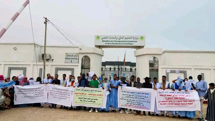 بعد بيان الثلاثاء 15/10/2024 الجائر في حق طلبة الدكتوراه الموجهين للجامعات المغاربية ضمن لوائح الحصة الرسمية (بدون منحة) والصادرة عن وزارة التعليم العالي والبحث العلمي وبعد لقاء غير إيجابي بوزير التعليم العالي يوم أمس الأربعاء، والذي لم يقدم فيه الوزير حلا منصفا للطلاب، وبدا كأنه غير معني، ولا مكترث بحقوقهم، دخل الطلاب المتضررون في سلسلة تحركات رافضة لقرار الوزارة، بدأت بتنظيم وقفة احتجاجية أمام وزارة التعليم العالي ضحى الخميس وأخرى مساء نفس اليوم أمام الجمعية الوطنية.