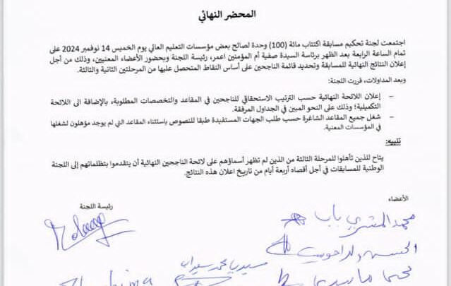 النتائج النهائية لمسابقة اكتتاب 100 أستاذ تعليم عالي/ لائحة