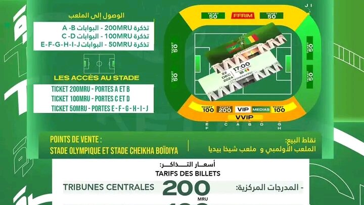 اعلنت اتحادية الوطنية لكرة القدم على صفحتها معلومات مفصلة حول طريقة اقتناء التذاكر الخاصة بمباراة المنتخب الوطني للمحليين ضد نظيره المالي في تصفيات الشان 2024.