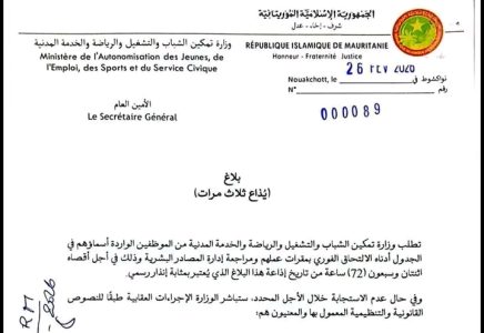 أجرى الفريق الفريق محمد الشيخ ولد محمد الأمين/ ألمين الملقب “البرور” المدير العام للأمن الوطني، تغييرات في الإدارات المركزية والإدارات الجهوية ومفوضيات الشرطة، وذلك على النحو التالي: