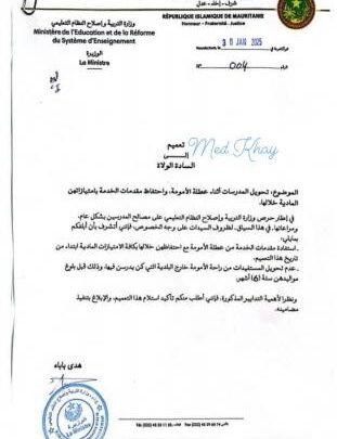 وحسب التعميم فإن هذه الإجراءات تأتي “في سياق مراعاة الوزارة لظروف المدرسات”.