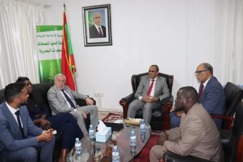 وفي مستهل اللقاء رحب رئيس السلطة العليا بالوفد الزائر، مؤكدا استعداده للتعاون مع هذه المؤسسة في سياق مهام السلطة العليا في ضبط وتطوير المشهد الإعلامي الوطني، مستعرضا حصيلة عمل الهيئة في إطار الشراكة والتعاون مع مندوبية الاتحاد الأوروبي في موريتانيا ، بغية العمل على ضمان تغطية مهنية وموضوعية ومتوازنة للانتخابات الرئاسية 2024 ، وقد شمل تكوين مائة صحفي على التغطيات المهنية للانتخابات ، ومواجهة الأخبار الزائفة وخطابات الكراهية ، ووضع ميثاق شرف للتغطيات الإعلامية ، مؤكدا أن دور الهابا متكامل مع مجموعة من السلط والمؤسسات التي تعمل على ترقية التجربة الديمقراطية في البلد خلال الفترات الانتخابية.