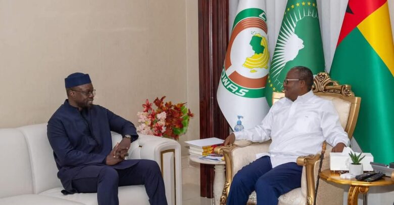 استقبل عمر سيسوخو امبالو رئيس غينيا بيساو اليوم الأحد (23 فبراير 2025م) رئيس الوزراء السنغالي (عثمان سونكو) الذي وصل اليوم في زيارة عمل رسمية استغرقت ساعات أجرى خلالها محادثات مع قادة هذا البلد الإفريقي المجاور للسنغال.