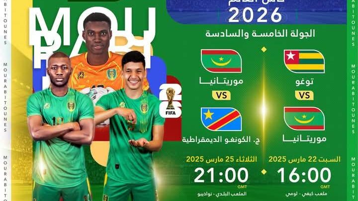 يلعب المنتخب الوطني لكرة القدم المرابطون في ال22 من مارس الجاري مباراة ضد نظيره التوغولي لحساب الجولة الخامسة من من تصفيات كأس العالم 2026.