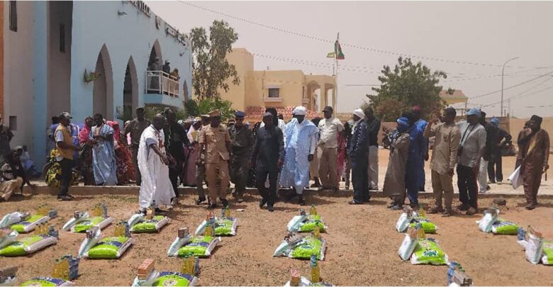 أشرف حاكم مقاطعة روصو، السيد امخيطرات ولد محمد فال، زوال اليوم الاثنين، على توزيع 100 سلة غذائية مقدمة من جمعية دار الحديث في موريتانيا، بتمويل من هيئة الأعمال الخيرية والإنسانية بعجمان، بدولة الإمارات العربية المتحدة، لصالح الأسر الضعيفة في المدينة.