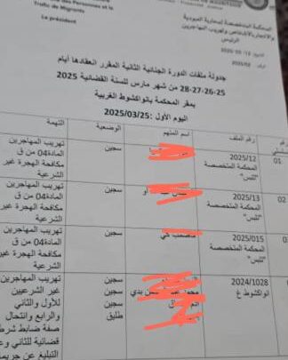 المحكمة المختصة تنظر في 21 قضية لتهريب المهاجرين وتؤجل البت في بعضها