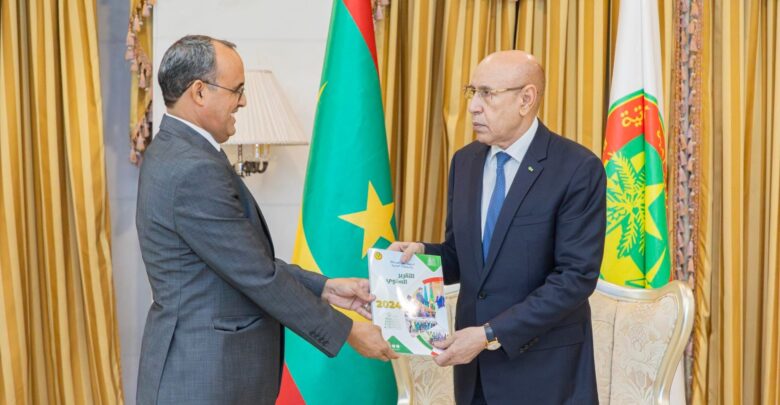 تسلم فخامة رئيس الجمهورية، السيد محمد ولد الشيخ الغزواني، اليوم الأربعاء بالقصر الرئاسي في نواكشوط، التقرير السنوي للسلطة العليا للصحافة والسمعيات البصرية، خلال استقبال خص به فخامة رئيس الجمهورية، اليوم رئيس السلطة العليا للصحافة والسمعيات البصرية، السيد محمد عبد الله ولد لحبيب.