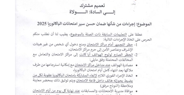 منها : - منع التجمهر أمام مراكز الامتحانات - طرد أي طالب وجدت بحوزته هاتف