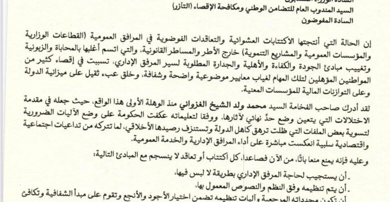 الوزارة الأولى : تعميم