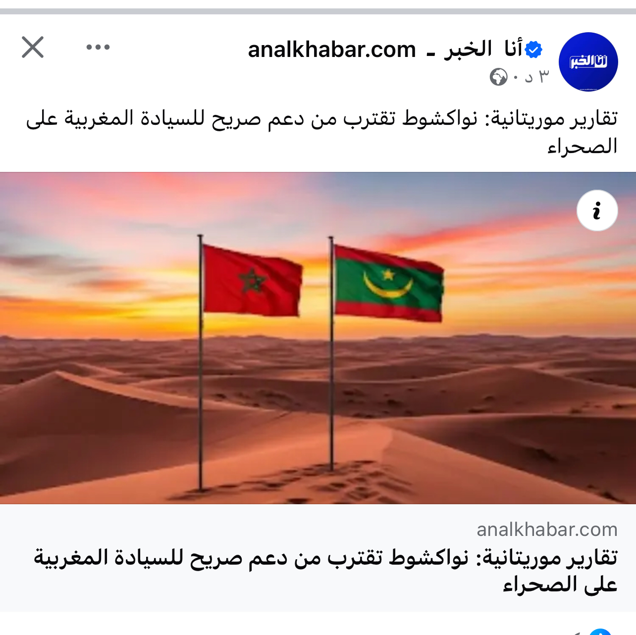 نقل موقع (أنا الخبر ) عن ما سماه تقارير موريتانية دون تحديد مصدر موثوق او رابط يتم من خلاله التوصل إلى نص هذه التقارير التي يزعم ان موريتانيا تقترب من دعم صريح للسيادة المغربية على دولة الصحراء الغربية