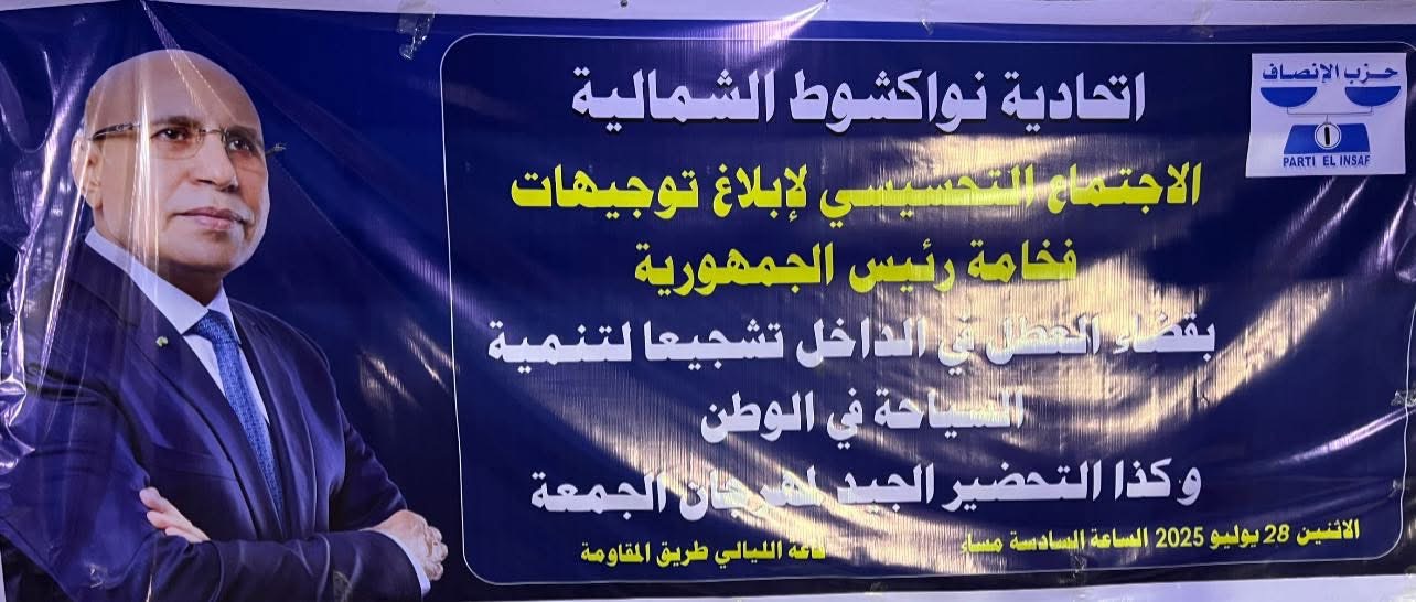 انسجاما مع توجيهات رئيس الجمهورية محمد ولد الشيخ الغزواني، الرامية إلى تشجيع قضاء العطلة داخل الوطن دعماً للاقتصاد المحلي وتعزيزاً للسياحة الداخلية، نظّمت اتحادية حزب الإنصاف على مستوى ولاية انواكشوط الشمالية نشاطاً تحسيسياً متميزاً.