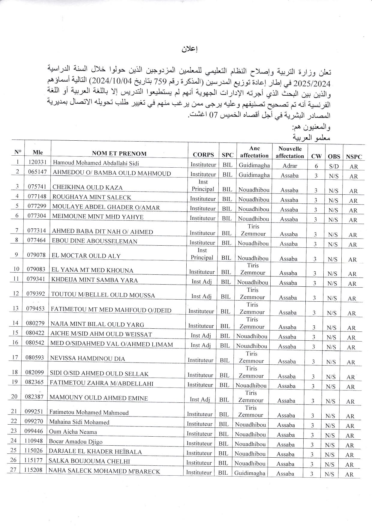 وزارة التربية تتيح للمدرسين الذين حولوا على أنهم مزدوجين ولم يستطيعوا التدريس إلا بلغة واحدة 2024/2025 فرصة اعادة التحويل إلى وجهة يرضونها و ذلك في اجل اقصاه الخميس 7 أغشت