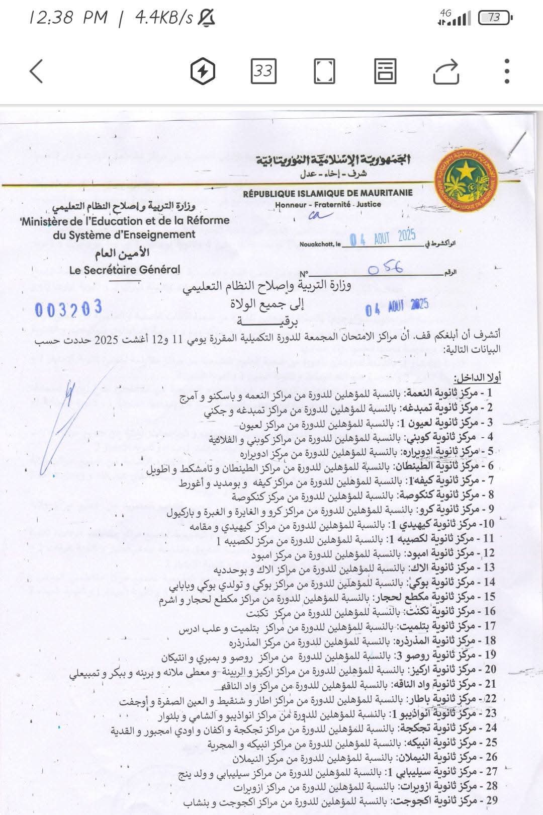 22. مركز ثانوية أطار بالنسبة للمؤهلين للدورة من مراكز أطار وشنقيط والعين الصفرة وأوجفت،
