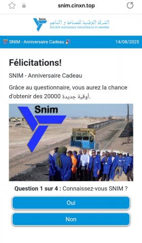 حذرت الشركة الوطنية للصناعة و المناجم “سنيم” الرأي العام من موقع ينتحل صفتها.