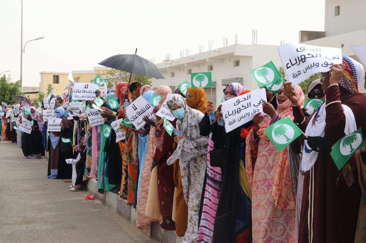 نظمت نساء حزب التجمع الوطني للإصلاح والتنمية (تواصل) اليوم الخميس وقفة احتجاجية أمام مقرّ الشركة الموريتانية للكهرباء بنواكشوط، تنديدا ورفضا لانقطاعات الكهرباء المتكررة، ومطالبةً بتحسين خدمات الشركة.