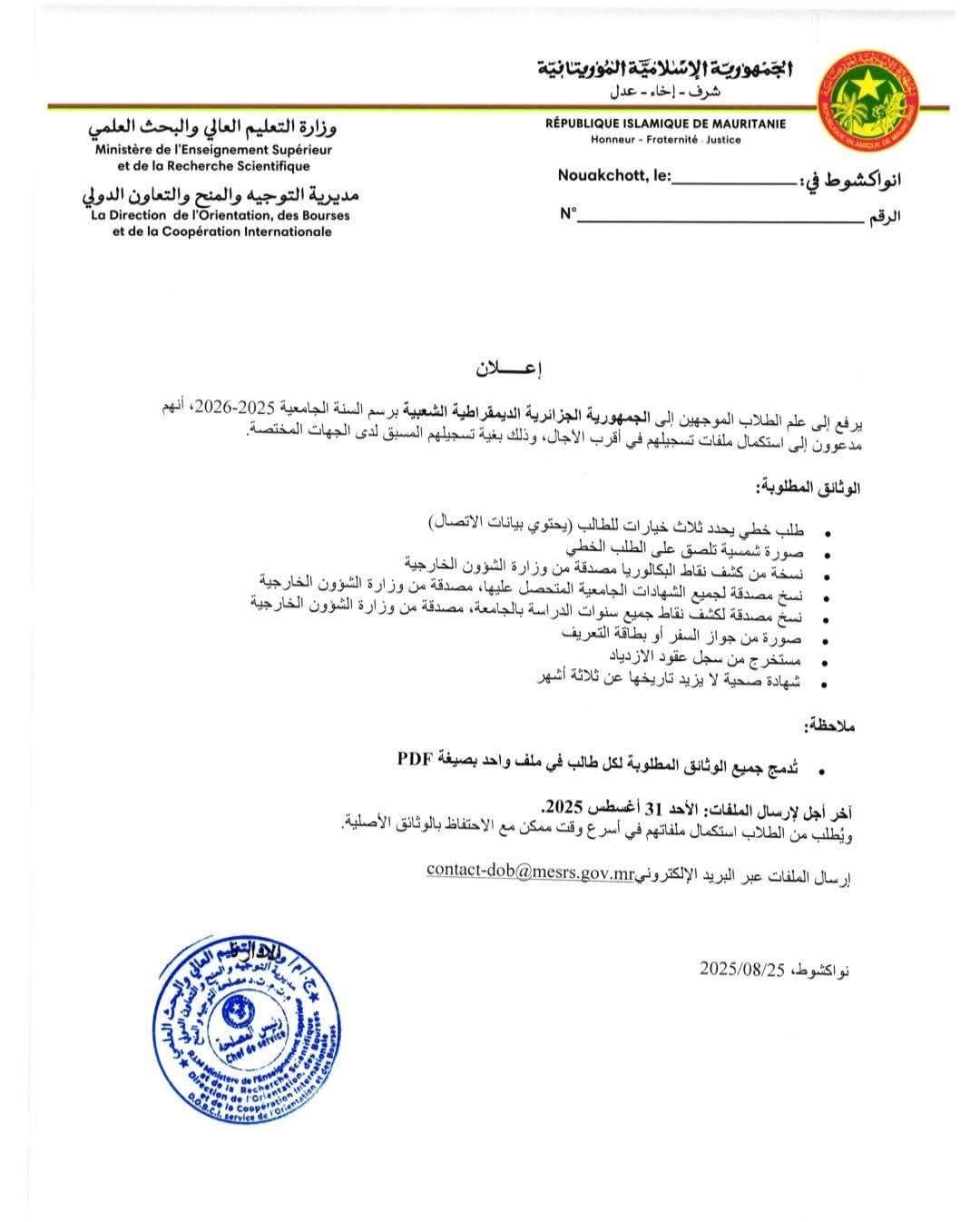 الرئيسية/أخبار وطنية/وزارة التعليم تطلب من الطلاب الممنوحين إلى الجزائر استكمال ملفاتهم أخبار وطنية وزارة التعليم تطلب من الطلاب الممنوحين إلى الجزائر استكمال ملفاتهم اظهر المزيد شاركها فيسبوك X واتساب مشاركة عبر البريد طباعة