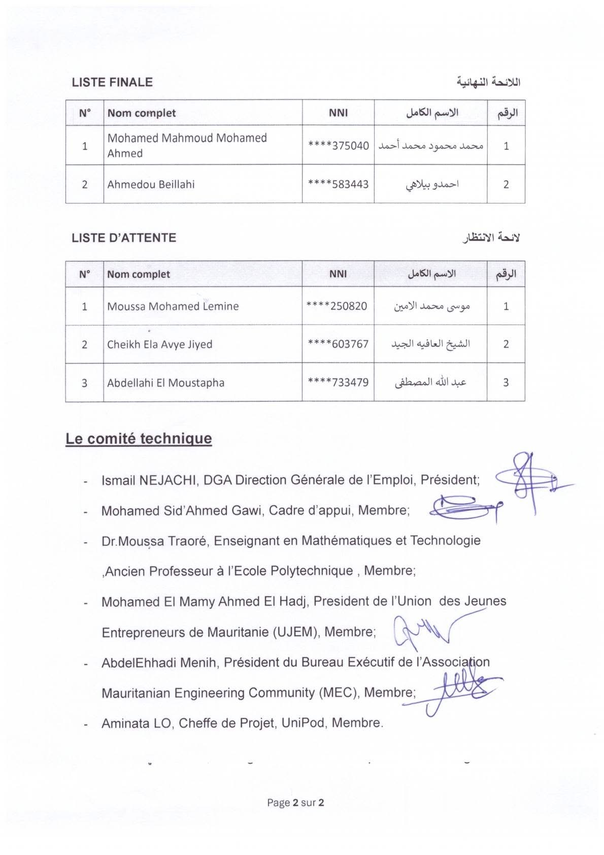 وتدعو الوزارة المترشحين المذكورة أسماؤهم في القائمة التالية، إلى التواصل مع الفريق المعني بالمشروع بمقر وزارة تمكين الشباب والتشغيل والرياضة والخدمة المدنية.