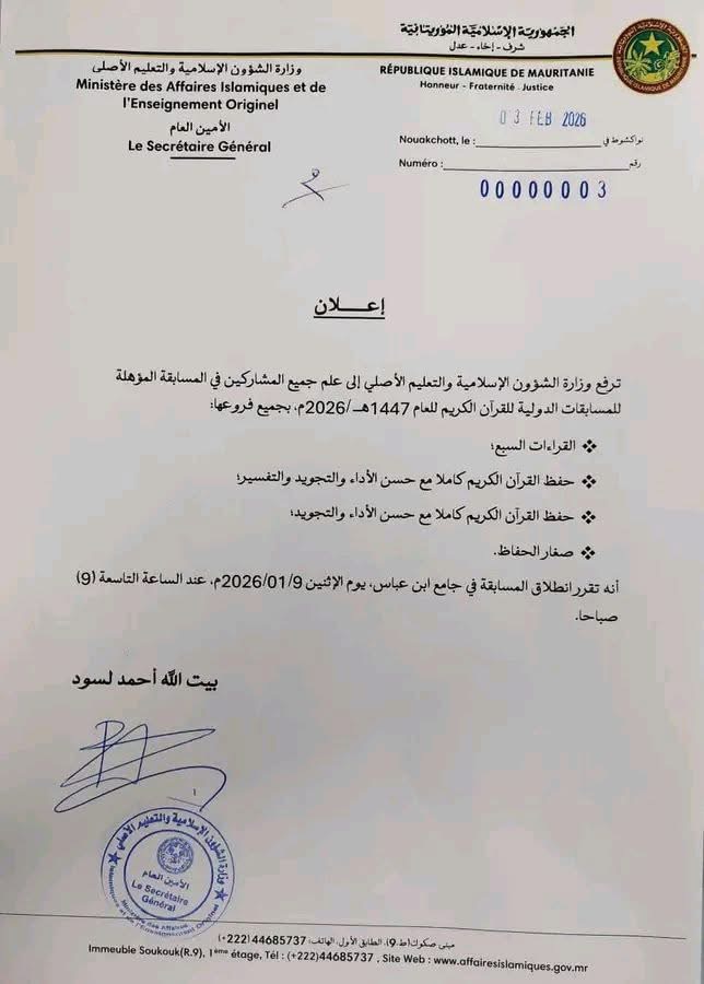 وأكد المصدر أن الإقالة جاءت بينما كان ولد العتيق يشرف ميدانيا على التحضيرات الجارية لاستقبال الرئيس محمد ولد الشيخ الغزواني، المقرر أن يترأس الخميس حفل إطلاق موسم زراعة الخضروات.