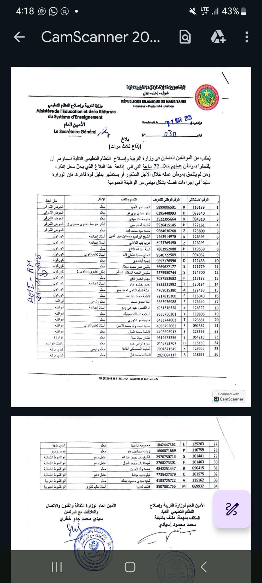 الرئيسية/أخبار وطنية/وزارة التربية تنذر 34 مدرسا و تطلب من الالتحاق بأماكن عملهم فى اقصاه اقصاه 72 ساعة أخبار وطنية وزارة التربية تنذر 34 مدرسا و تطلب من الالتحاق بأماكن عملهم فى اقصاه اقصاه 72 ساعة اظهر المزيد شاركها فيسبوك X واتساب مشاركة عبر البريد طباعة
