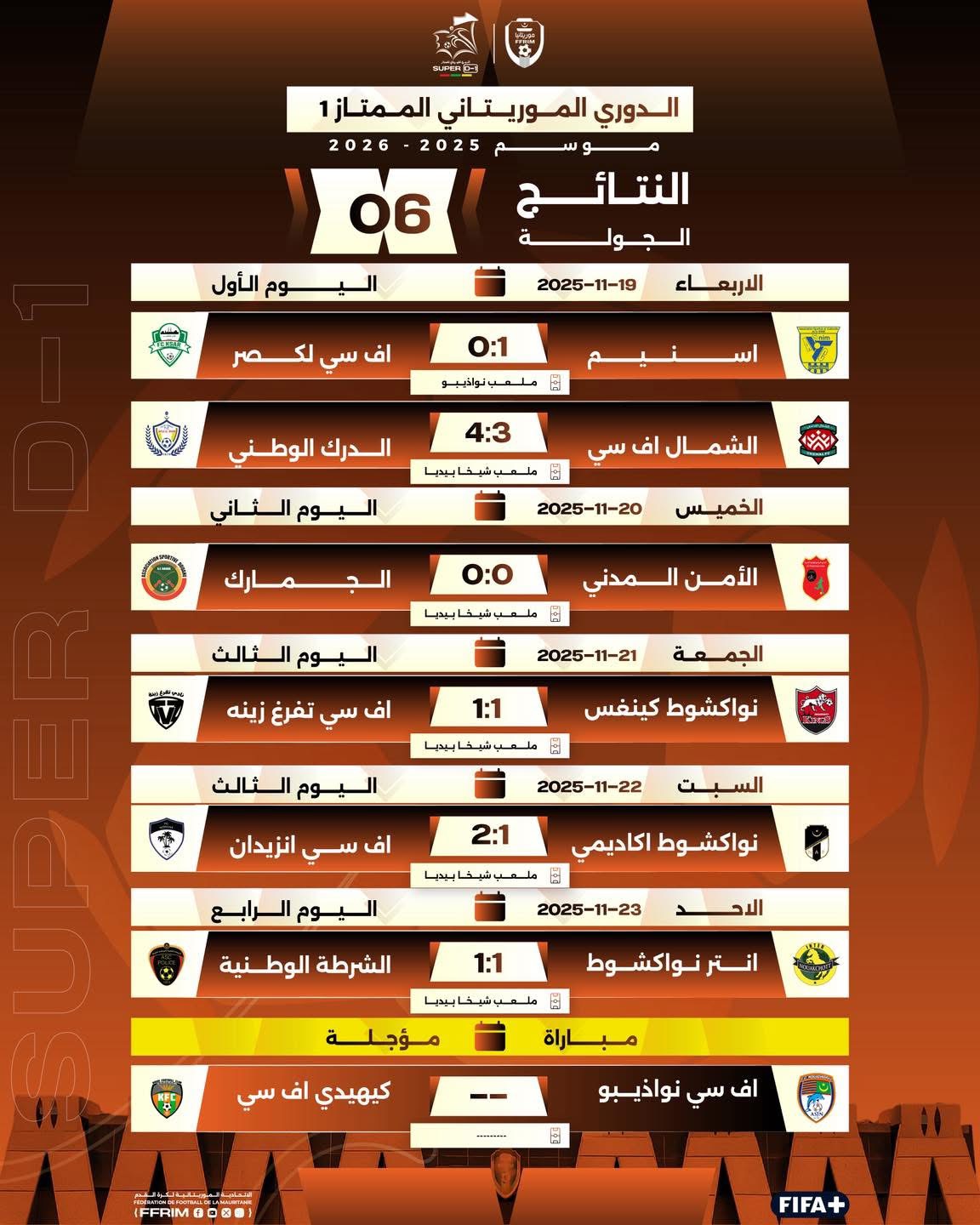 الرئيسية/رياضة وترفيه/موريتانيا: النتائج والترتيب العام للدوري الممتاز 1 مع نهاية الجولة السادسة من البطولة. رياضة وترفيه موريتانيا: النتائج والترتيب العام للدوري الممتاز 1 مع نهاية الجولة السادسة من البطولة. اظهر المزيد شاركها فيسبوك X واتساب مشاركة عبر البريد طباعة