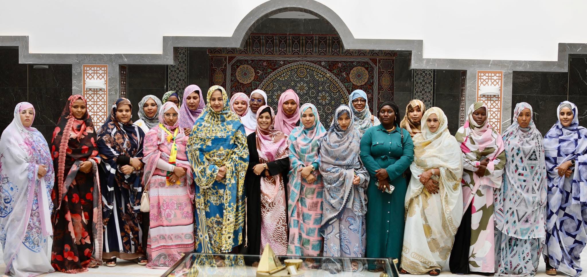 استقبلت السيدة الأولى، الدكتورة مريم محمد فاضل الداه، اليوم بالقصر الرئاسي في نواكشوط، الفتيات المكرمات من قبل فخامة رئيس الجمهورية السيد محمد ولد الشيخ الغزواني، خلال فعاليات اختتام المؤتمر الوطني لتمكين الشباب، المنظم في قصر المؤتمرات المرابطون يوم السبت الماضي.