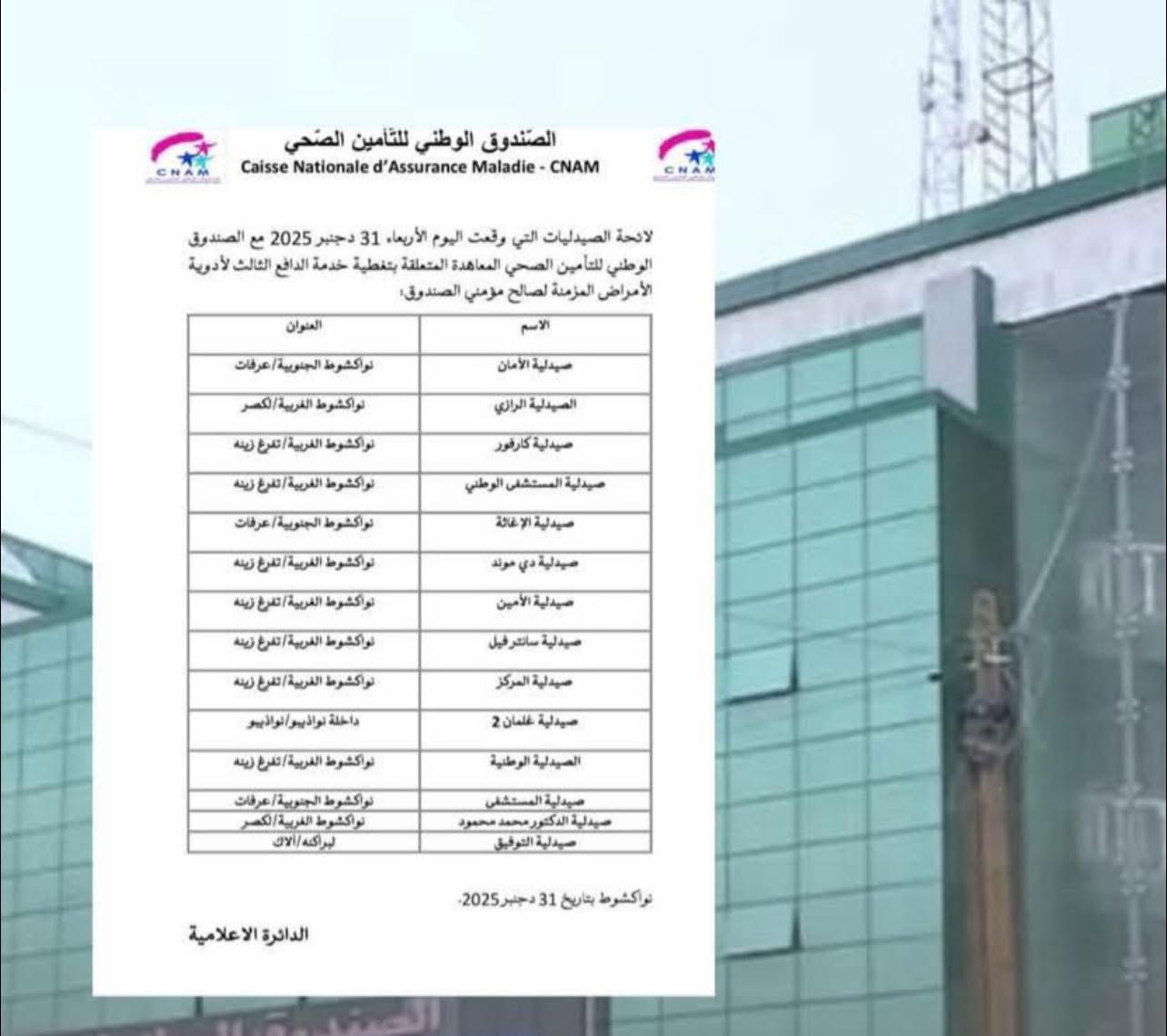 أكنام تعلن لائحة الصيدليات و المصحات المعتمدة 2026