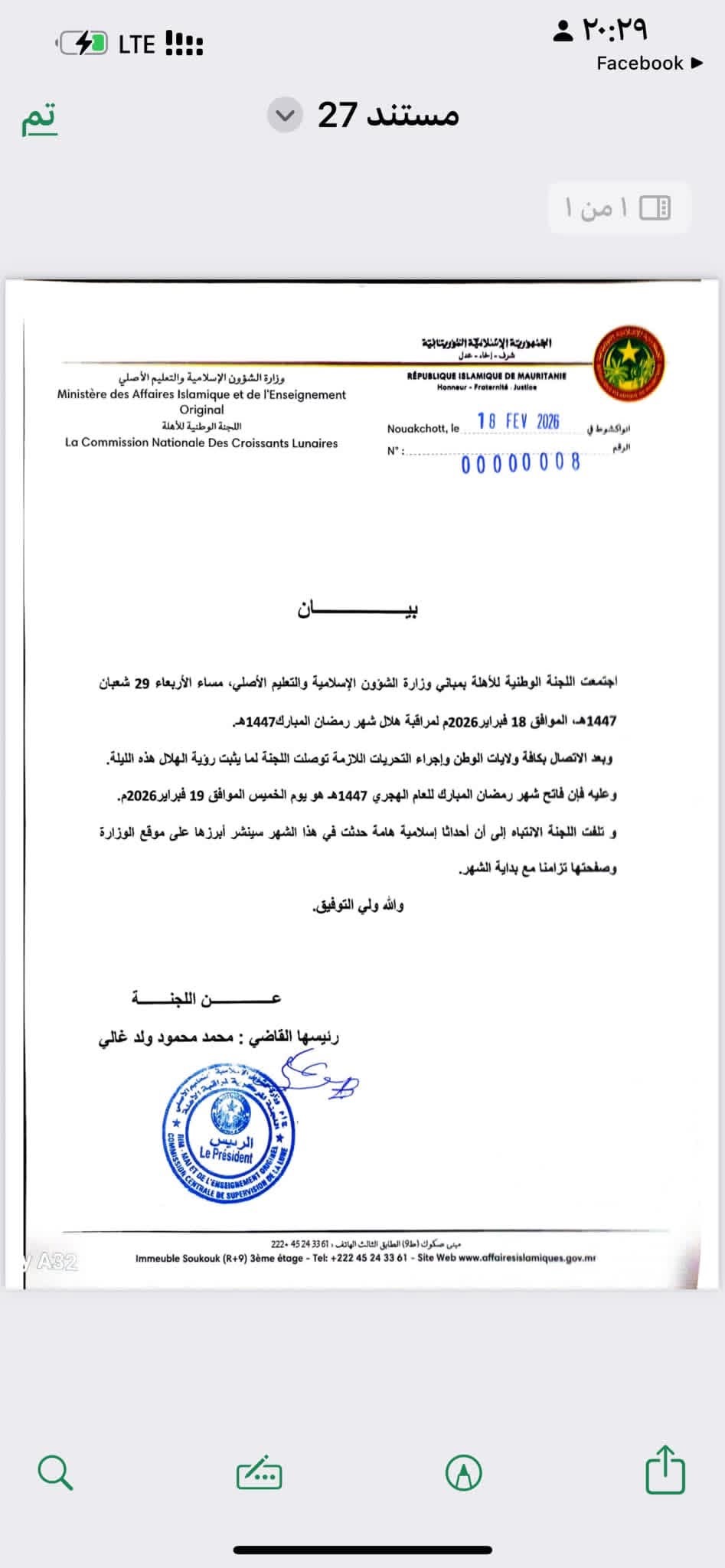 وبعد الاتصال بكافة ولايات الوطن وإجراء التحريات اللازمة توصلت اللجنة لما يثبت رؤية الهلال هذه الليلة.
