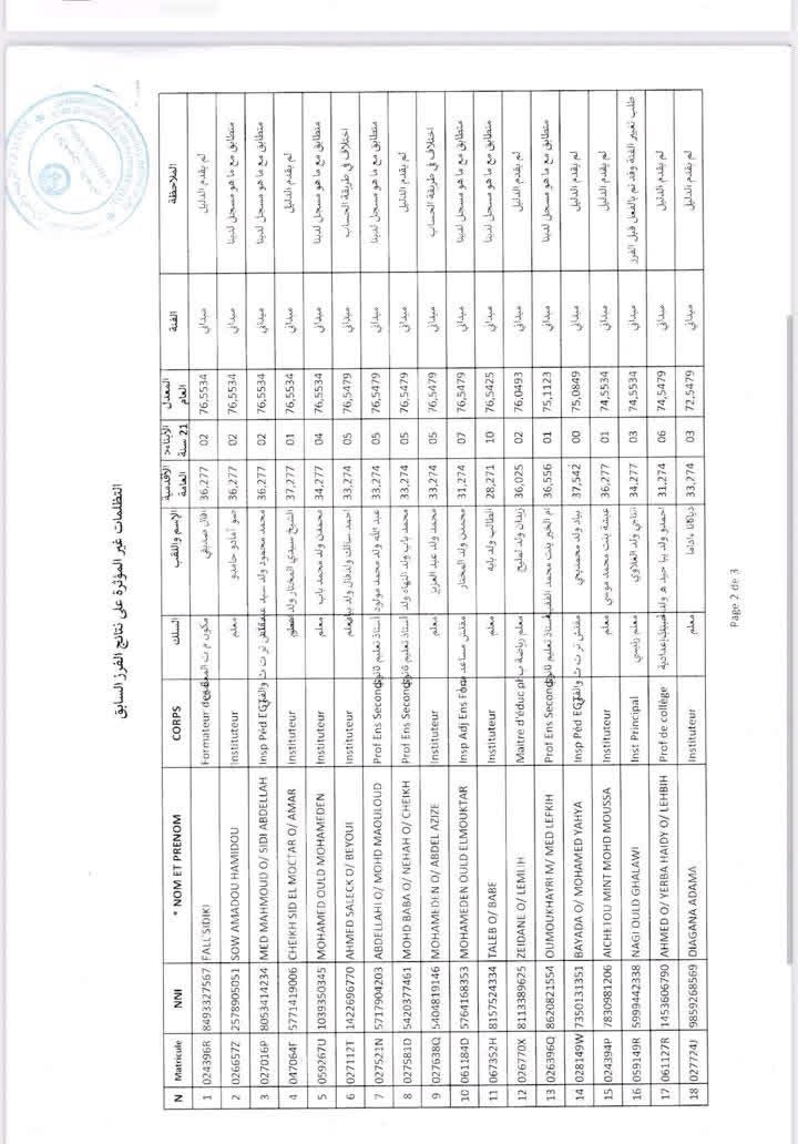 نتاج التظلمات المؤثرة وتلك غير المؤثرة على نتائج الفرز السابق.
