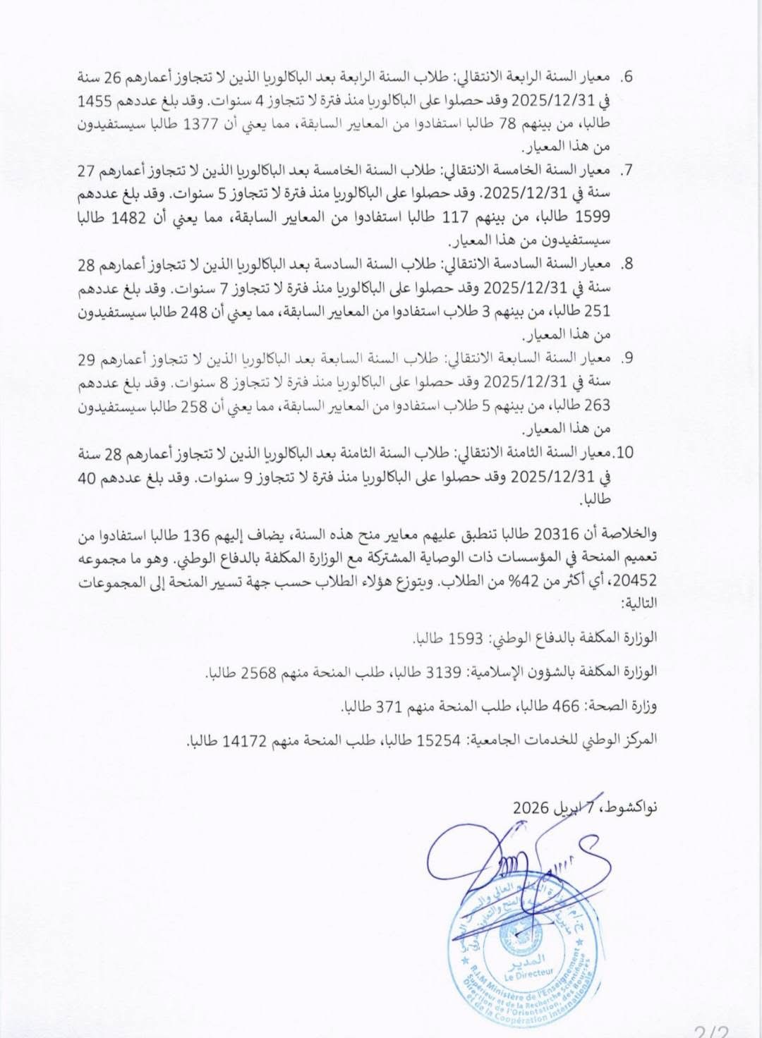 أعلنت وزارة التعليم العالي و البحث العلمي عن استكمال إسناد المنح بعد دراسة التظلمات