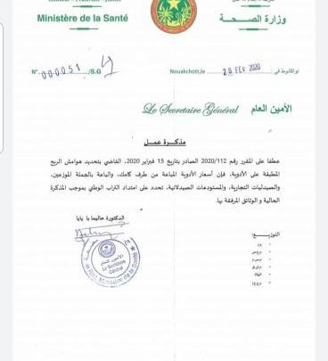 عاجل : وزارة الصحة تحدد أسعار الأدوية …..صورة من(( المذكرة))